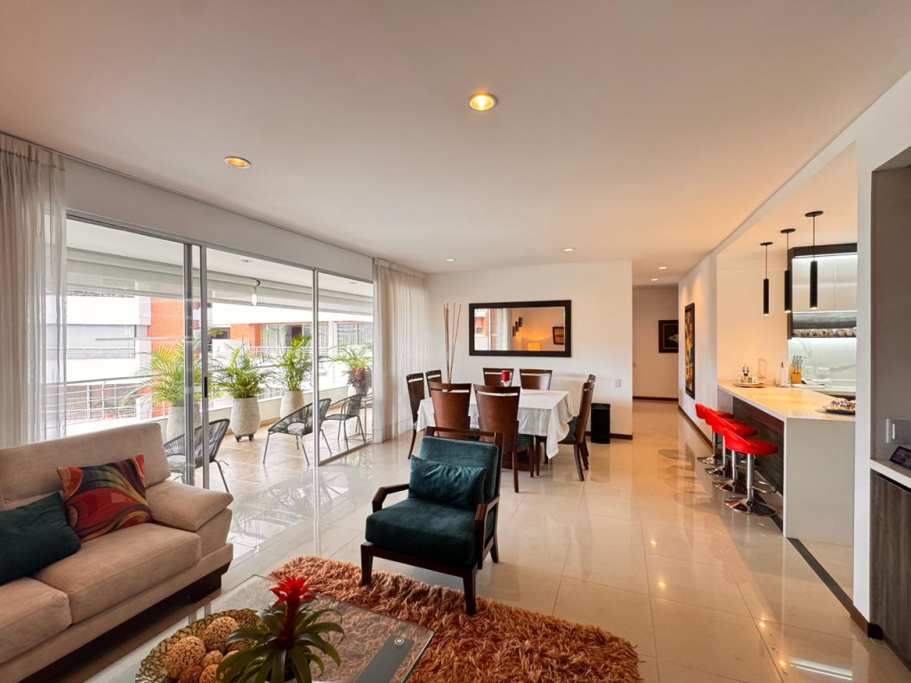 Espectacular Apartamento Alquiler Amoblado Con Full Acabados Con Hermosa Vista Al Sur De Cali Desde Piso Alto, Fresco, Consta De Sala Comedor Amplia Con Cocina Integral Tipo Americana Con Acabados De última Generación Con Estufa, Horno, Campana Extractora, Zona De Ropas Independiente. Hall De Alcobas, Amplio Espacio De Estar De Televisión O Estudio, Habitacion Auxiliar Con C...