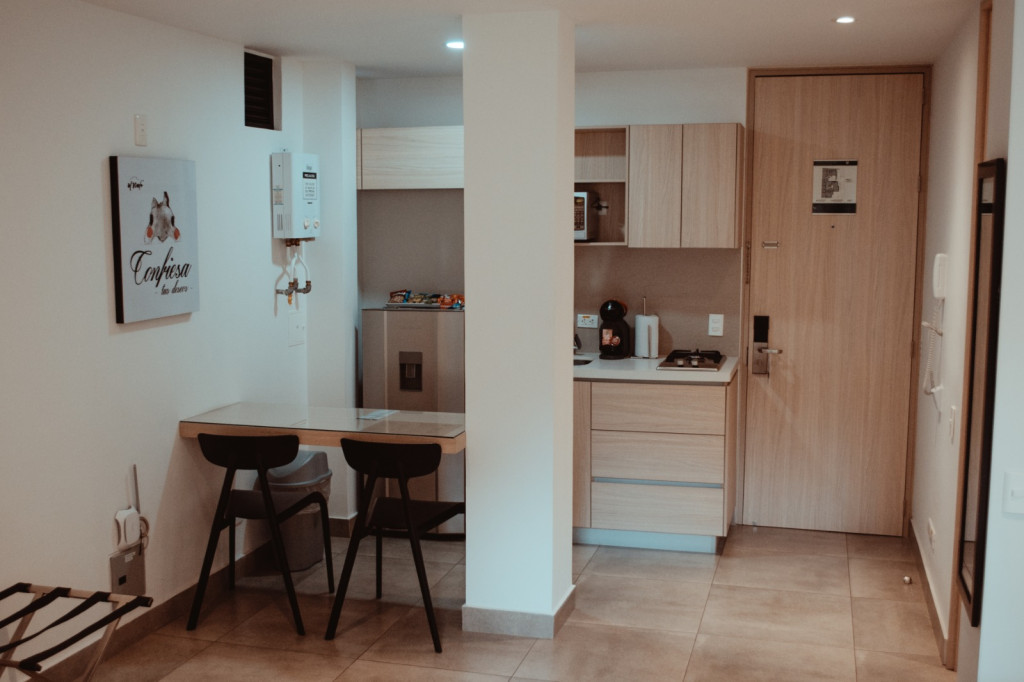 SE ALQUILA APARTAESTUDIO dentro de un HOTEL, Amoblado, amplio, moderno, sofisticado, cuenta con cocineta y nevera pequeña, excelentes acabados, Excelente oportunidad para vivir en un ambiente tranquilo, en una de las zonas más exclusivas de la ciudad, con fácil acceso, cerca de restaurantes, almacenes y centros comerciales. Dentro del canon tiene incluido los siguientes servicios:Administración, Internet ilimitado, Red de Tv por codificador, seguridad privada del Hotel 24/7 ... tiene lavadora, patio y balcón NO TE PIERDAS LA OPORTUNIDAD DE VIVIR EN UN EXCELENTE SECTOR MODERNO Y EXCLUSIVO