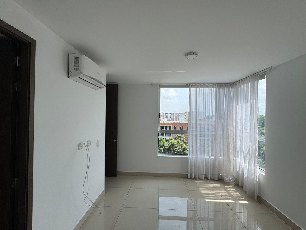 Viventu Arrienda Espectacular Apartamento en Valle del lili. Amplio full acabados, con espectacular vista desde piso alto, consta de sala comedor amplia, balcón que se integra a la zona social, zona de ropas, cocina integral con gabinetes, alacena, estufa, horno, campana extractora, Baño social, Hall de alcobas, estudio, estar de TV con mueble empotrado o 3ra habitación, 2 habitaciones, la hab auxiliar con closet, Habitación principal con baño privado amplio vestier y aire acondicionado, se entrega con calentador, cuenta con parqueadero propio cubierto. El condominio tiene excelentes zonas sociales club house con gimnasio, piscina para adultos y niños, turco, salón de eventos, cancha, zona de juegos infantiles, porteria con recepcion, parqueaderos para visitantes. Excelente ubicación cerca de centros comerciales y fácil acceso. Ubicación estratégica contáctanos al 305 dos cincuenta y cuatro 45 cincuenta y nueve